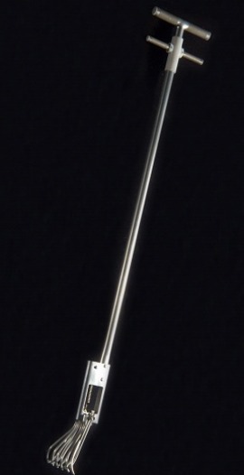 The rake is adjustable for ease of sample collection and stowage. A handle, approximately 25 cm (10 inches) long, attaches to the extension handle for sample collection tasks