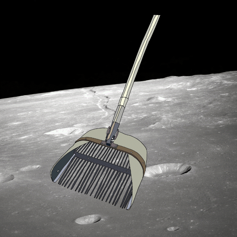 The sampling scoop is used to collect soil material or other lunar samples too small for the rake or tongs to pick up.